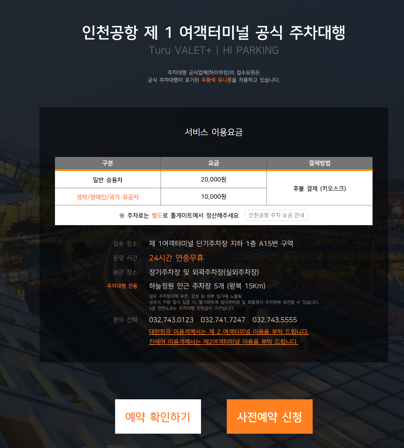 사용하시는 신용카드 혜택내용 중에 "인천공항 발렛비 연2회 무료" 라는 내용이 있는지 확인해 보시면 됩니다.