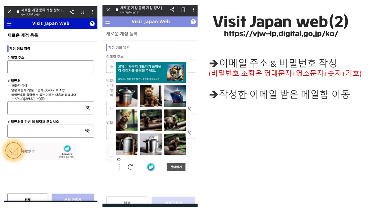 5) 이메일 주소 확인 (이메일로 들어가 비짓재팬에서 온 이메일을 열고 쓰여 있는 코드 확인하여 비짓재팬 웹에 작성 ->계정 활성화)