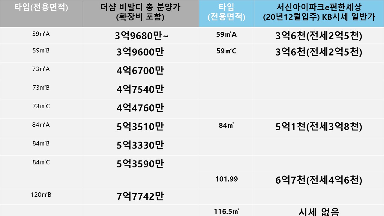 4. 주변 시세와 서신더샵비발디 분양가 비교